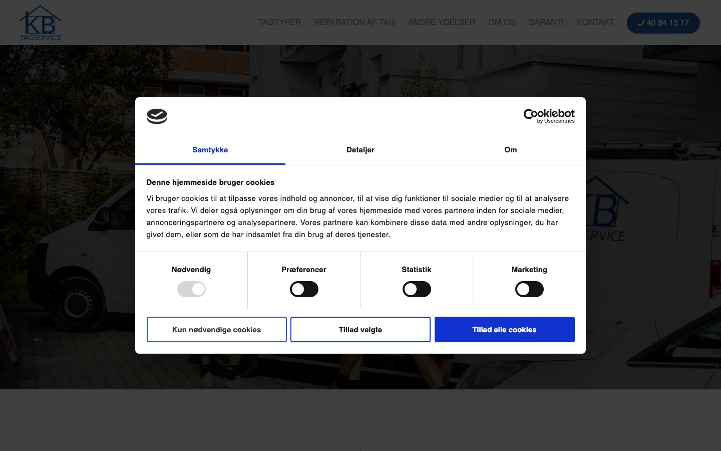Kom i kontakt med KB-Tagservice direkte via telefon, email eller deres hjemmeside.